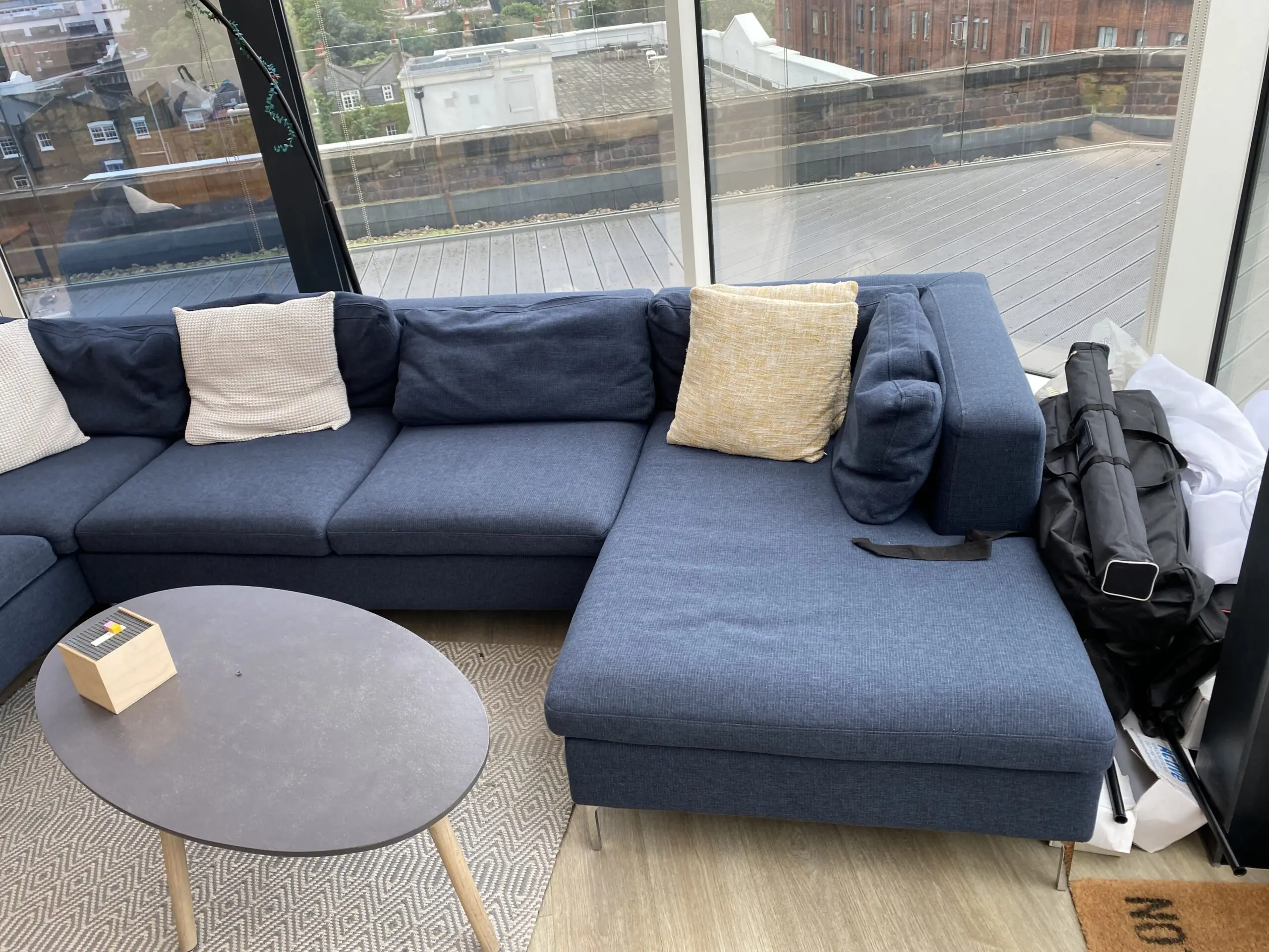 Good condition with no major marks or damage. Comfortable, deep seats with removable slim metal legs. The modular design allows the sections to be rearranged to suit different room layouts. Originally purchased for around £2k. Perfect for a larger living space and ready for a new home.