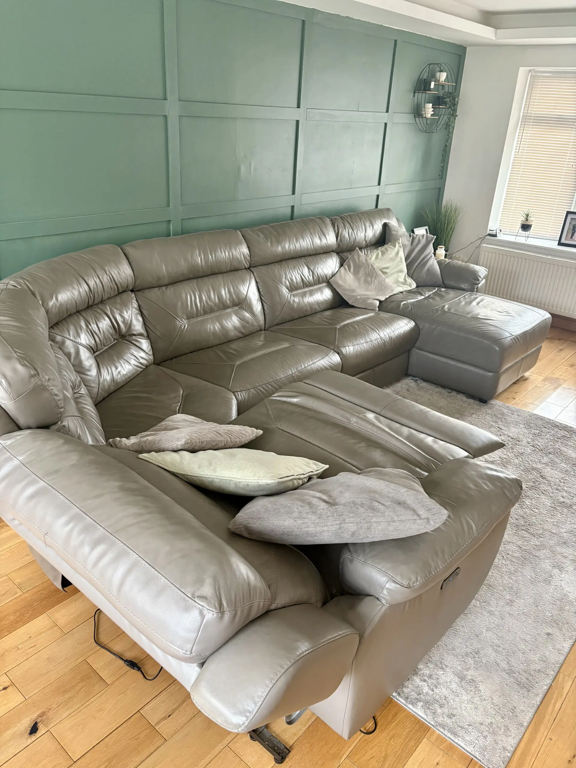 5 SEATER INCLUDING CHAISE & RECLINER. VERY GOOD CONDITION EXCEPT FOR SOME LEATHER WEARING ON THE CHAISE AND A COUPLE OF SCUFF MARKS ON THE BACK OF THE SOFA WHERE IT’S BEEN AGAINST PANELLING.