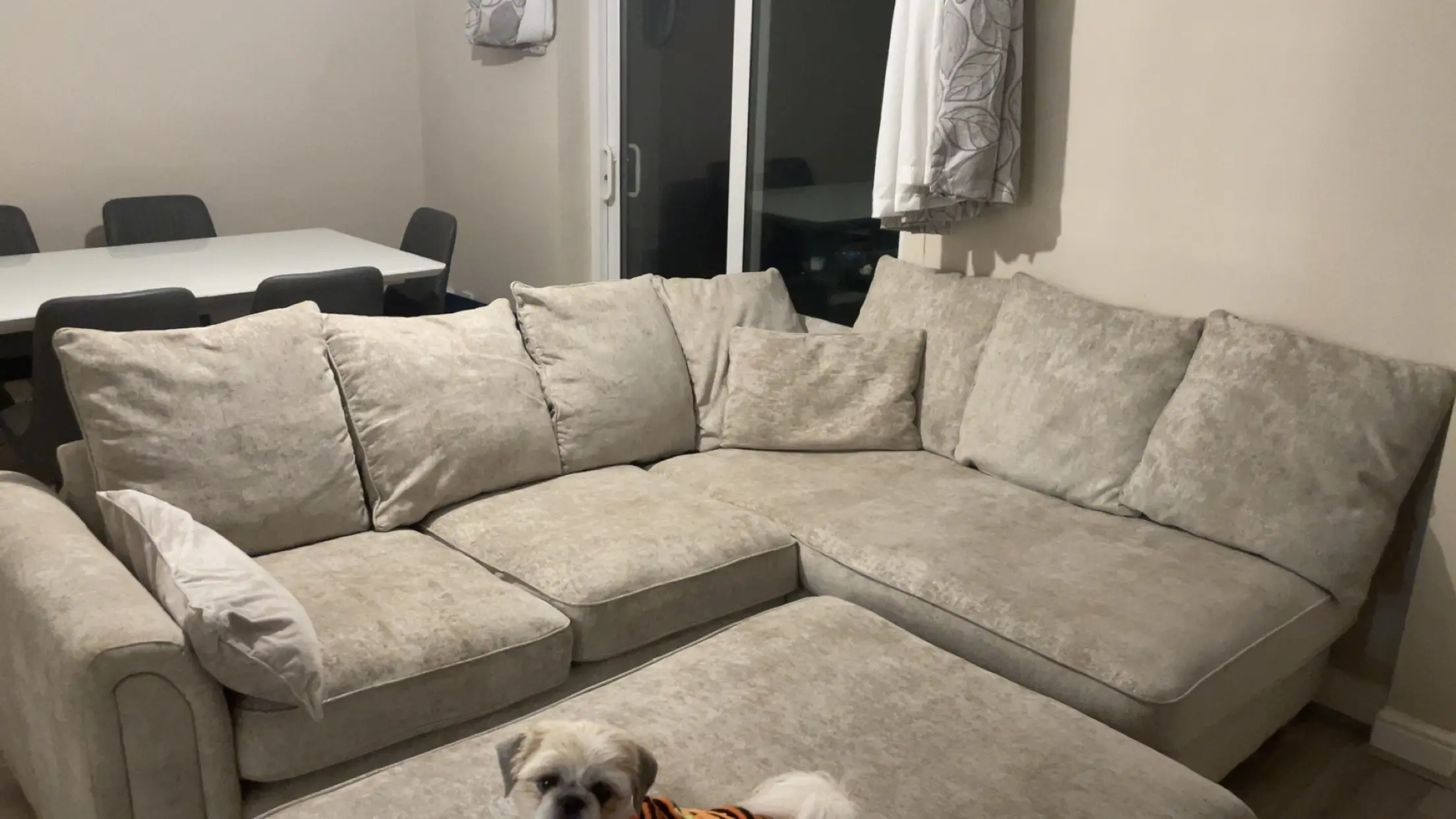 A 2 year old corner sofa with a pouf making it like a sofa bed. It is in excellent condition and pet friendly and still like brand new. We are selling our sofa, as we are looking for something smaller. We are happy to bargain